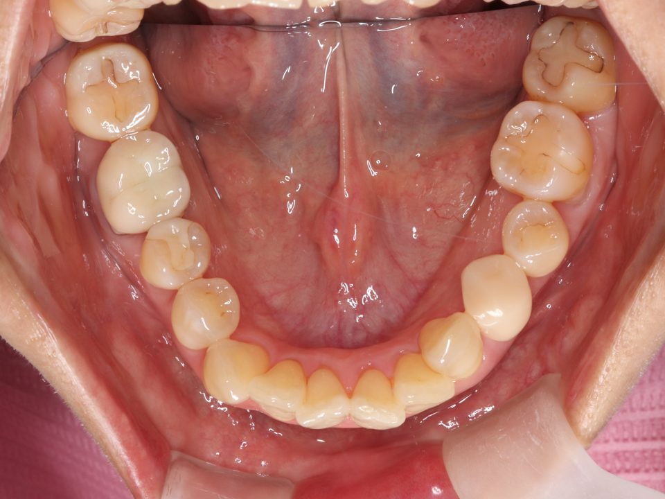 マウスピース型の矯正治療装置を使用し、歯のやすり掛け(IPR)を行いました。