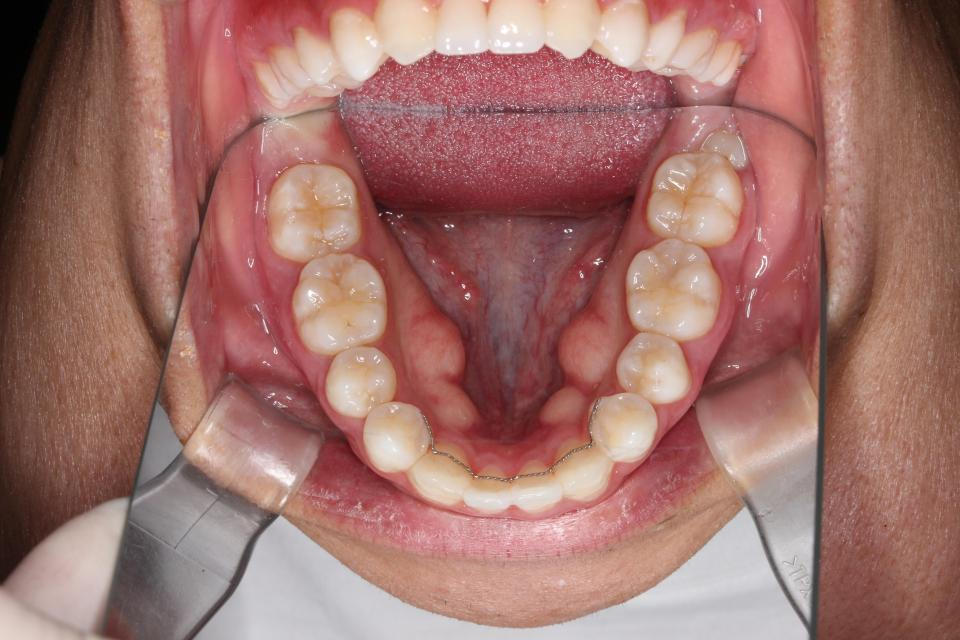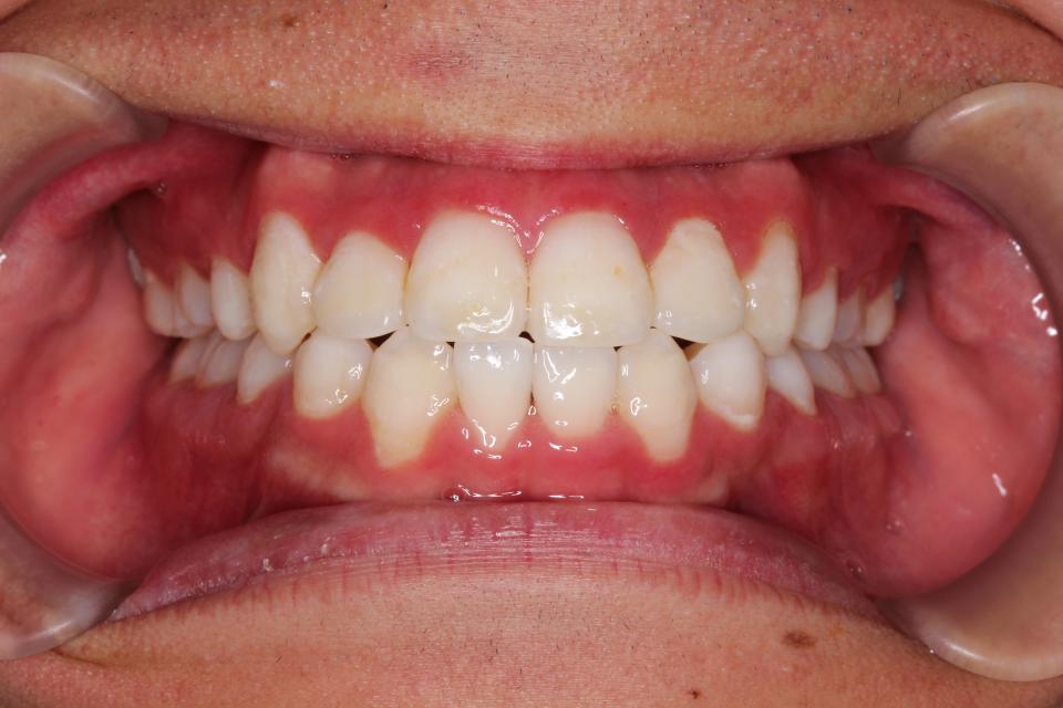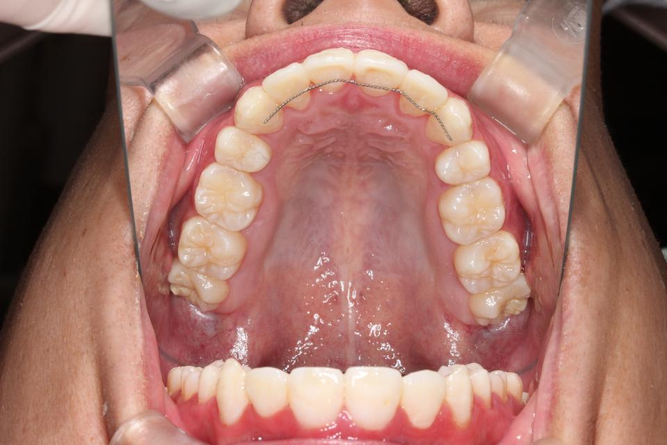 歯並びを並べる治療は終わり、現在は前歯の裏側にワイヤーをつけ、それと同時に