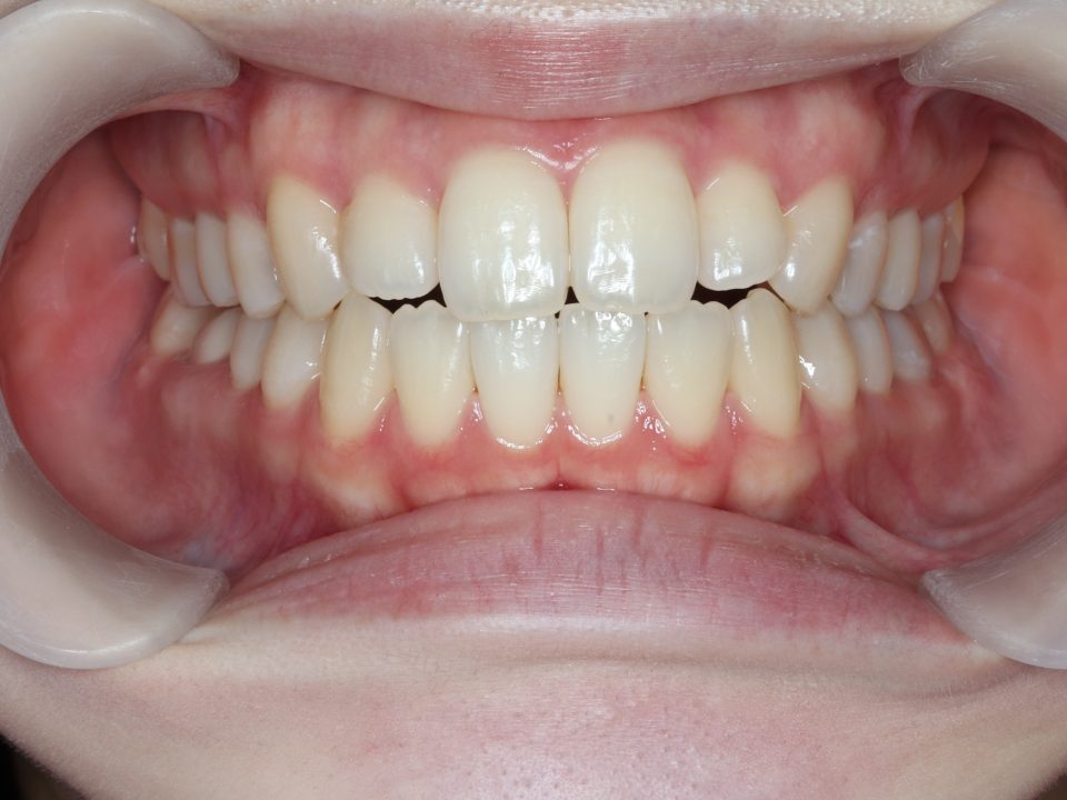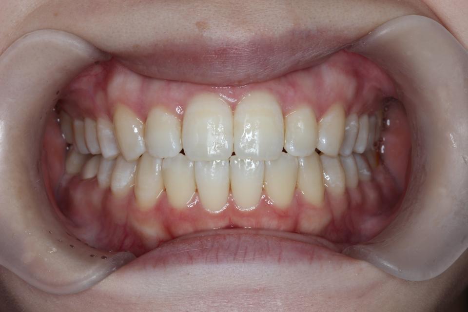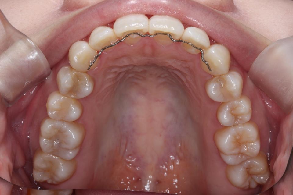 歯並びを並べる治療は終わり、現在は前歯の裏側にワイヤーをつけ、それと同時に